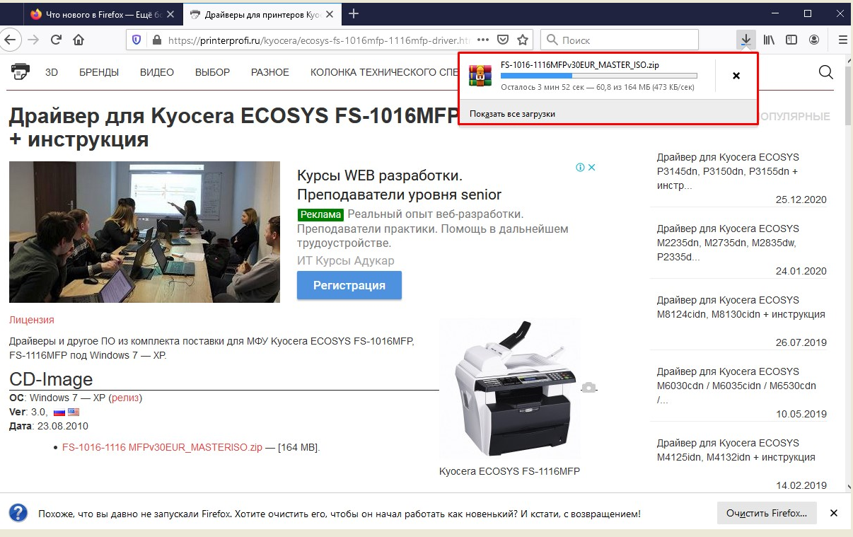 Драйвер для Kyocera ECOSYS FS-1016MFP, FS-1116MFP + инструкция